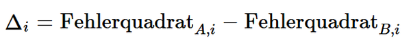 Zur Modellvergleichbarkeit wird die Differenz der Fehlerquadrate zwischen Modell A (Logit) und Modell B (XGBoost) für jede Beobachtung berechnet: