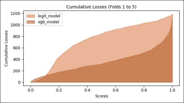 Zur Beantwortung dieser Frage analysieren wir die kumulative Verlustverteilung beider Modelle. Im Zentrum steht dabei die Fragestellung: Wie viele tatsächliche Ausfälle hätte ein Modell übersehen, wenn man die Kreditereignisse mit den höchsten prognostizierten Ausfallwahrscheinlichkeiten abgelehnt hätte?
